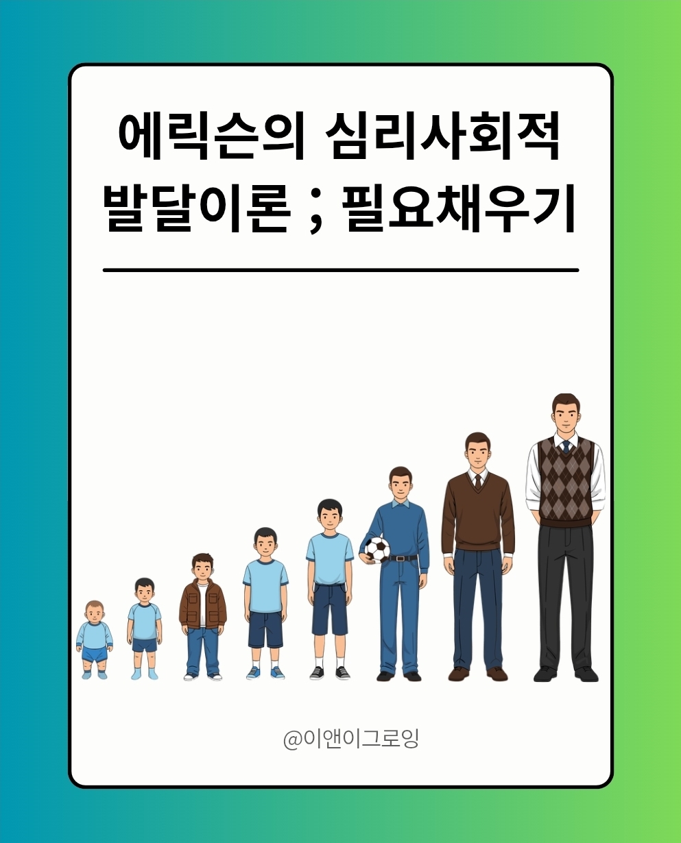아이를 키우거나 학생을 지도하다 보면 “왜 이 시기에 이런 행동을 하지?”라는 질문이 생깁니다. 이때 자주 활용되는 이론이 에릭슨(Erikson)의 심리사회적 발달이론이에요. 핵심은 아주 간단합니다. 인간은 각 발달 단계마다 해결해야 할 ‘과업(필요)’이 있고, 이를 잘 충족하면 건강한 성격과 자아가 형성되지만, 충분히 충족되지 않으면 이후 삶에서 위기감과 부정적 정서가 커질 수 있다는 관점입니다.
