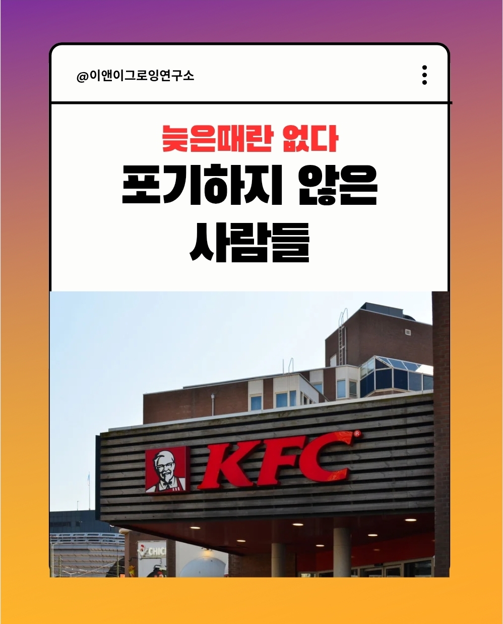64세까지 실패를 반복하던 그는 65세에 KFC로 백만장자가 됩니다. 늦은 성공의 상징적인 인물입니다.