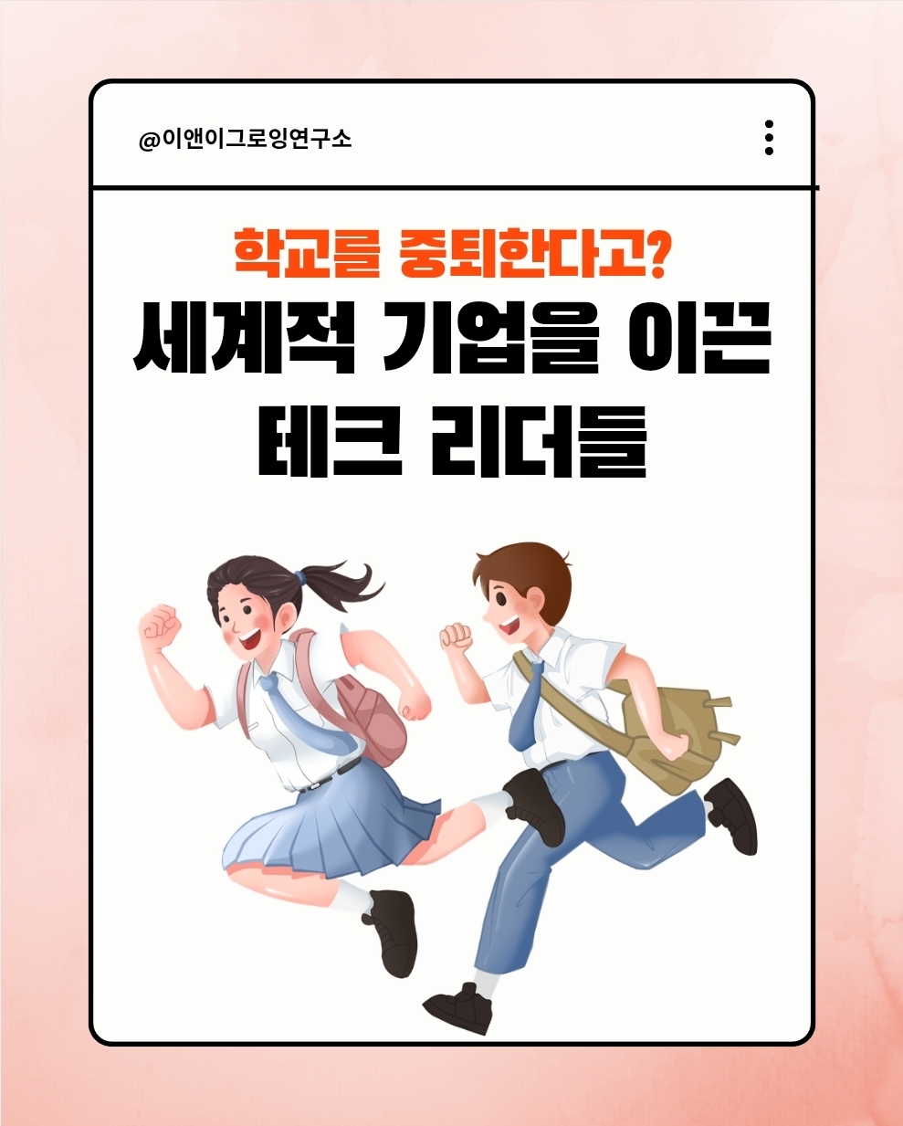 중요한 것은 학교를 다녔는가, 중퇴했는가가 아니라 그 이후 어떤 방향으로 자신의 삶을 설계했는가입니다.