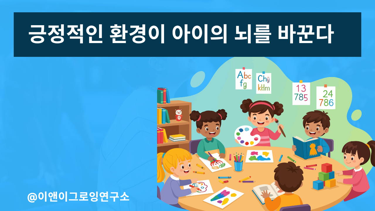 긍정적인 환경은 단순한 배려가 아닙니다. 그것은 아이의 뇌를 변화시키고, 삶의 방향을 바꾸는 가장 강력한 교육 도구입니다. 오늘 우리 교실의 환경은 아이의 가능성을 키우는 방향인가요, 아니면 제한하고 있지는 않은가요? 이 질문에서 모든 교육이 시작됩니다.