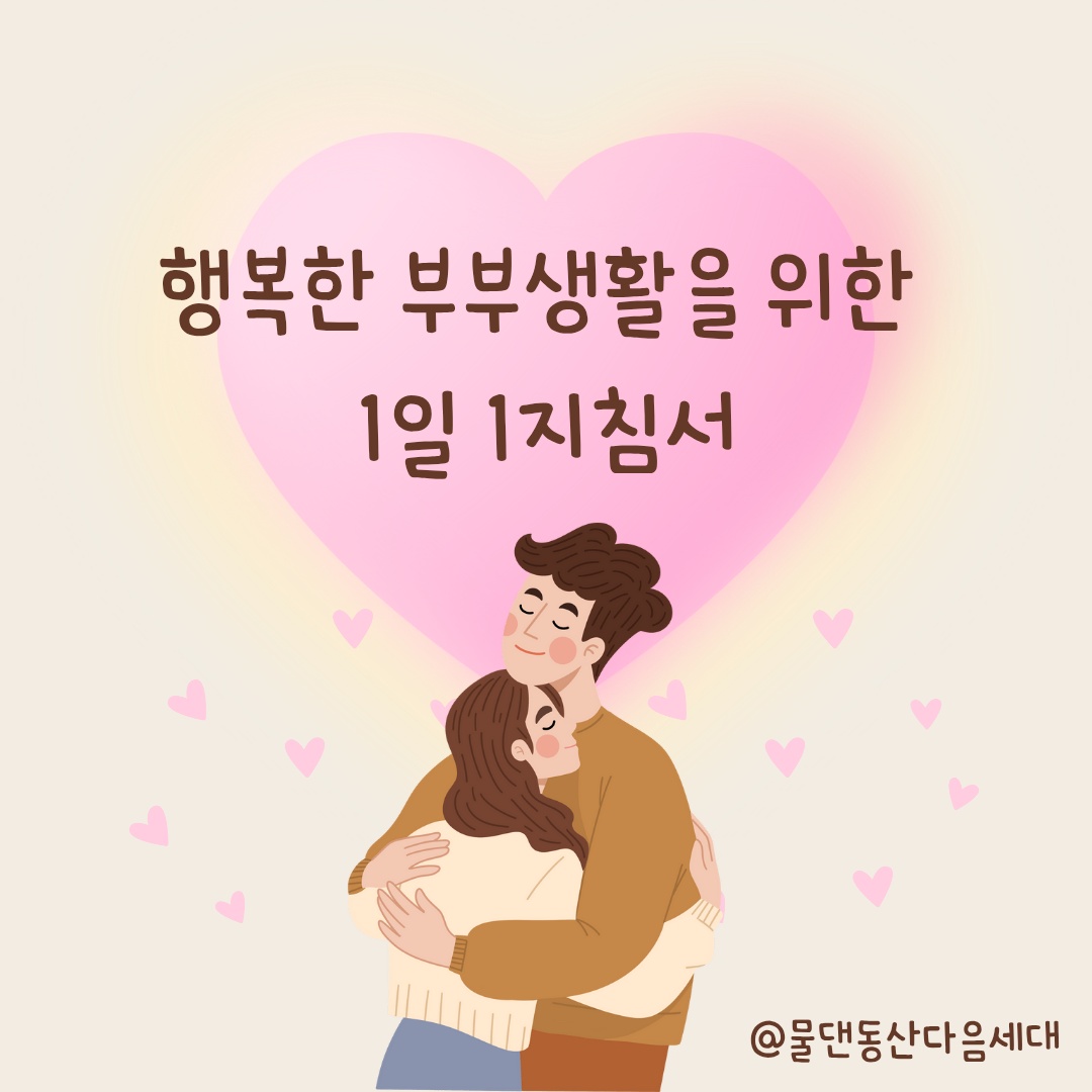 가장 좋은 자녀교육은 부부간의 행복입니다. 엄마아빠가 행복해야 아이들이 정서적으로 잘 자랍니다. 이 글에서는 행복한 부부생활을 위해 지켜나가면 좋을 행동들을 나열해 보았습니다. 매일의 실천으로 행복한 가정이 되시길 축복합니다.